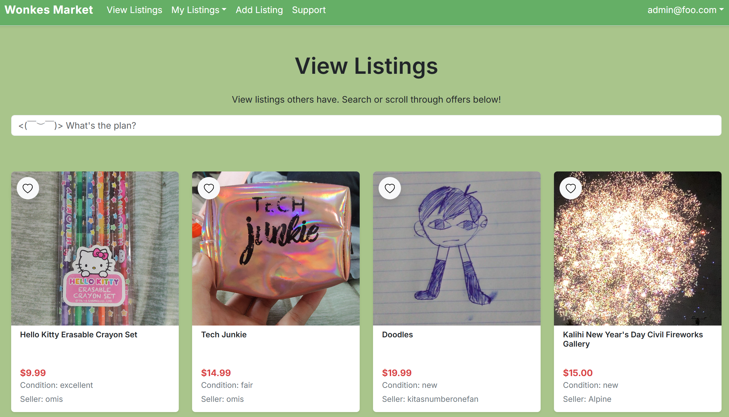 It was difficult trying to find a project idea to work on, but we eventually decided on the marketplace idea based on a team poll, along with what we knew and learned in class. It felt very similar to what we already learned, so starting off with our main function (listings) and getting it working felt the easiest to do. On the implementation of getting a user’s profile listing, I had problems with my own local branch. Because there was an issue with node packages compatible with my computer and with the database, the listings had to be hardcoded temporarily just so I could get a workable mockup on the User‘s page. I also worked on playwright testing and adding it to Github’s Actions workflow. This enables any pushed code related to user permissions to be checked if it breaks. It was difficult because of how different browsers are. The testing makes sure the code works on Edge, Firefox, and Chrome, but Firefox would always present issues. I added a modification so that past saved instances of a user token (a temporary “key” that could be used as a login instead of the actual login details) would get deleted, just to make sure the current key is up to date for the tests to run correctly.